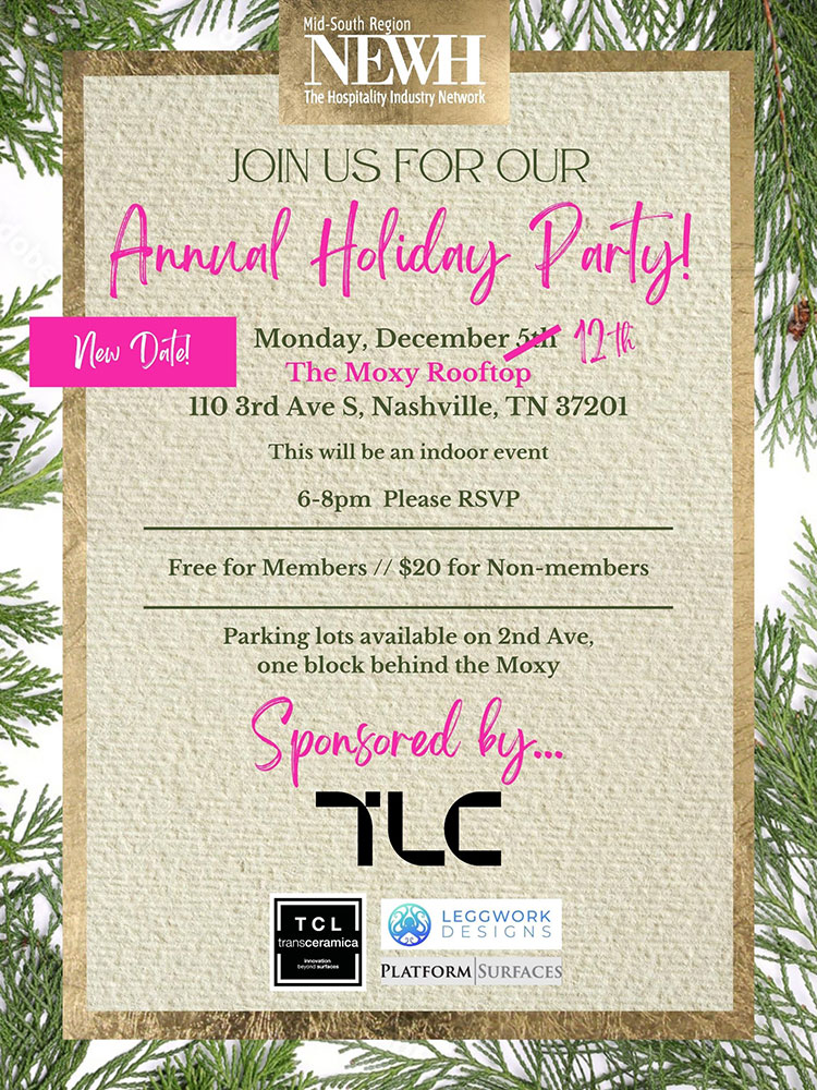 NEWH/Mid-South Region and NEWH, Inc. invite you to attend this event solely at your own risk. Measures will be taken to comply with all applicable health and safety directives, but by attending the event you assume any and all risks associated with your attendance, including without limitation, exposure to the COVID-19 virus.