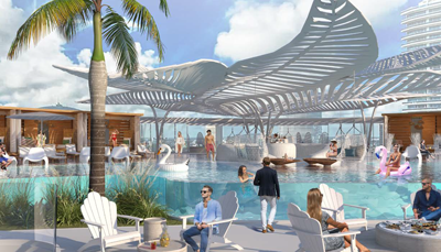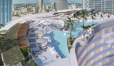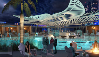 The rooftop is no longer just a bar, or just a pool, but rather a re imagined place to spend the morning, the day, the evening, and well into the night. It is versatile, alive, fresh and flowing. The entire deck is slightly submerged, ankle deep, a gently flowing extension of the infinity pool. The bar has no barstools, it is not meant for tight congregation, but is rather a focal, organic element where bartenders prepare drinks to be delivered to guests. Cabanas have operable access from the rear for servers to safely and privately deliver trays of food and drinks. The entire pool deck, from cabanas to cantilevered oceanfront firepits, is conducive to Food and Beverage. Spaces are easily transformed to open air concerts, yoga decks, movie amphitheaters, and barefoot cocktail parties. So spend an hour, or spend the day – feel the cooling water underfoot, feel the warming sun on your skin, feel the ocean breeze cleaning your soul… and allow yourself the freedom to grow.