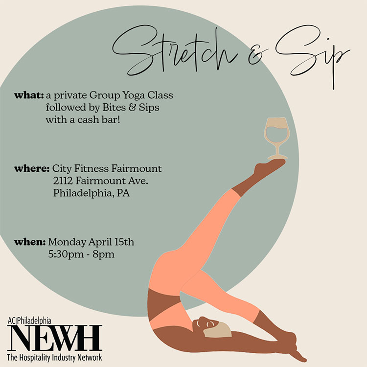 First stop STRETCH in a private Yoga class at the brand new City Fitness Fairmount location! Then head next door with us to the neighborhood staple Urban Saloon restaurant to SIP, eat and network!
