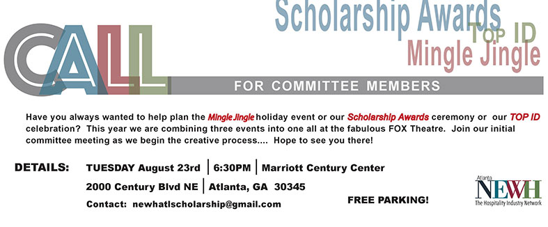 Atlanta NEWH Call for Committee Members Meeting Start: Tuesday, August 23, 2016 6:30 pm CDT End: Tuesday, August 23, 2016 Venue: Marriott Century Center Address: 2000 Century Blvd NE, Atlanta, GA, 30345 Join us! click here to RSVP Map
