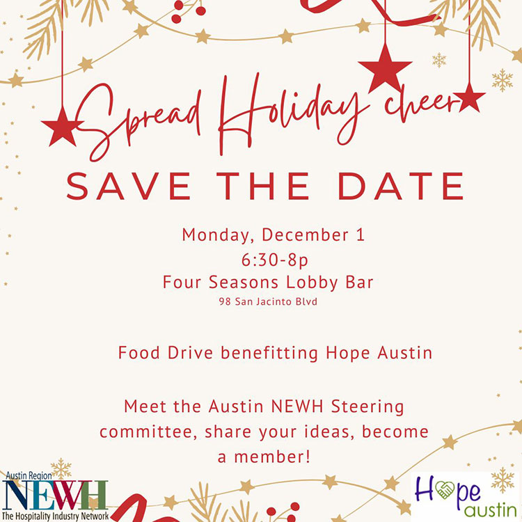 Come learn more about your local NEWH Austin Region, pick up instructions for the food drive, and start collecting! Food donations will be collected during the week of December 15th. The group with the largest amount of donated items will earn a fun surprise in January, 2026!