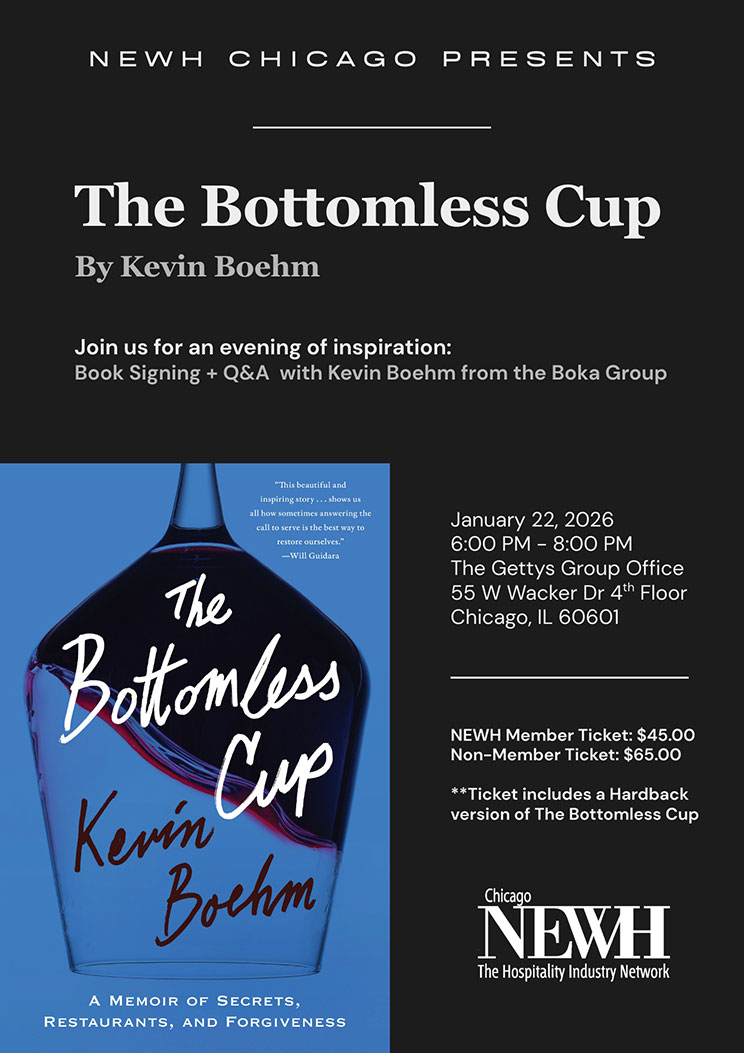NEWH Chicago is excited to invite you to an evening of inspiration featuring Kevin Boehm, co-founder of the Boka Group, for a book signing and Q&A centered around his memoir, The Bottomless Cup.