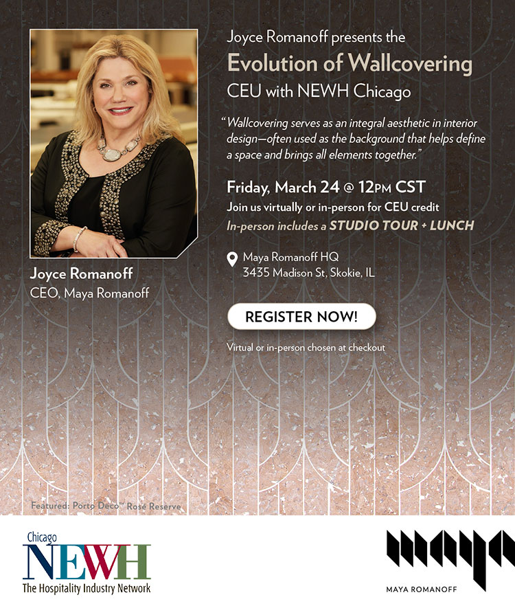 Chicago NEWH CEU Start: Friday, March 24, 2023 12:00 pm CDT End: Friday, March 24, 2023 1:00 pm CDT Venue: Virtual and In-person at Maya Romanoff HQ Address: 3435 Madison Street, Skokie, IL, 60076 Click here to Register now! Map