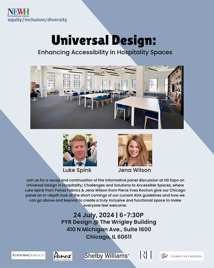 Join NEWH Chicago for a compelling event focused on the importance of Universal Design in Hospitality. Our in-depth panel discussion will explore the challenges and innovative solutions to creating inclusive and functional spaces in both public areas and guest rooms.