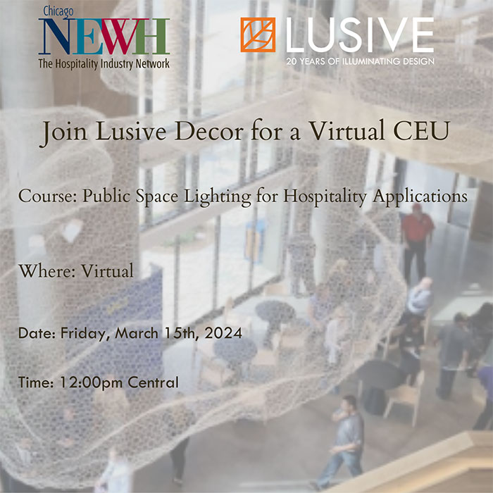 Chicago NEWH Virtual CEU Start: Friday, March 15, 2024 12:00 pm CDT End: Friday, March 15, 2024 1:00 pm CDT Venue: Virtual CEU Click here to Register! CEU presenter: Lusive Decor