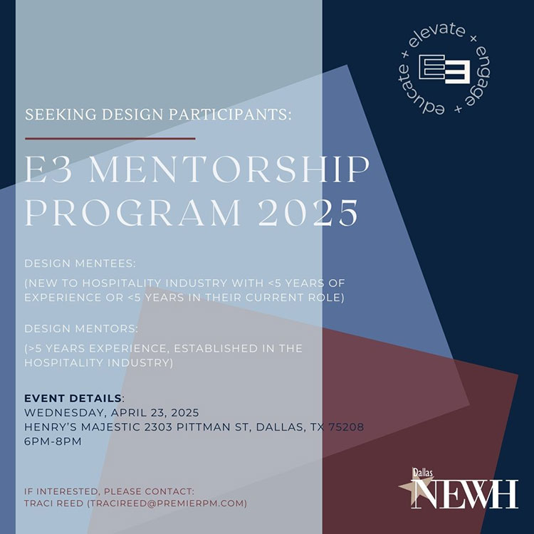 Design Mentees: New to hospitality industry <5 years of experience or <5 years in current role