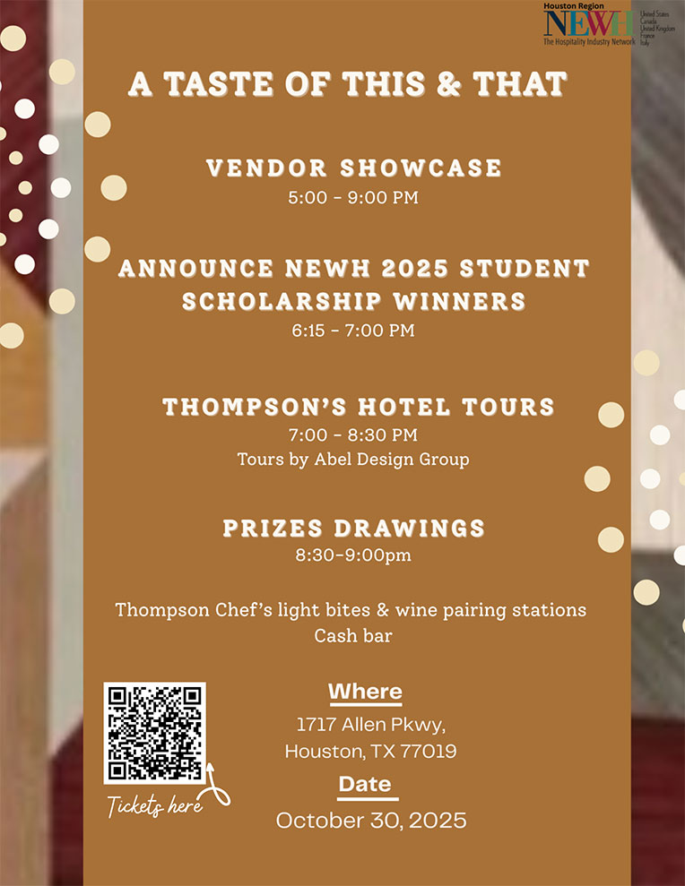 NEWH/Houston Region and NEWH, Inc. invite you to attend this event solely at your own risk. Measures will be taken to comply with all applicable health and safety directives, but by attending the event you assume any and all risks associated with your attendance, including without limitation, exposure to the COVID-19 and other health and safety risks.