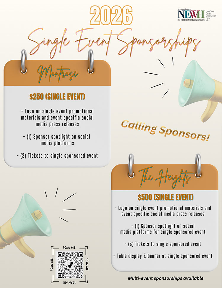 NEWH/Houston Region and NEWH, Inc. invite you to attend this event solely at your own risk. Measures will be taken to comply with all applicable health and safety directives, but by attending the event you assume any and all risks associated with your attendance, including without limitation, exposure to the COVID-19 and other health and safety risks.