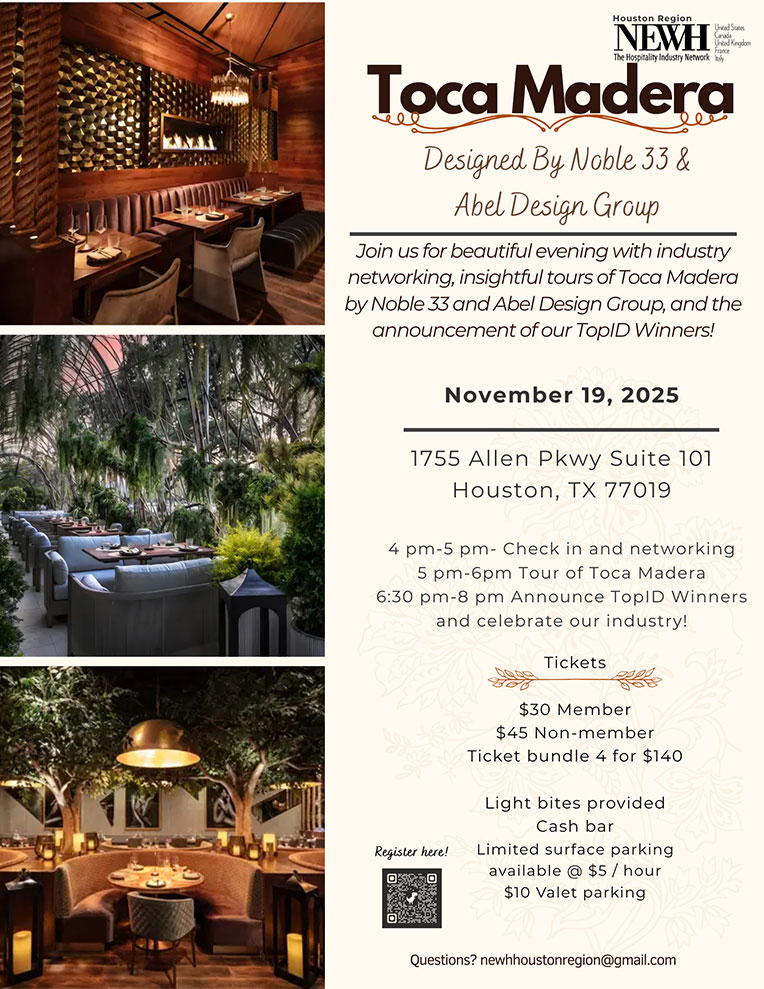 NEWH/Houston Region and NEWH, Inc. invite you to attend this event solely at your own risk. Measures will be taken to comply with all applicable health and safety directives, but by attending the event you assume any and all risks associated with your attendance, including without limitation, exposure to the COVID-19 and other health and safety risks.