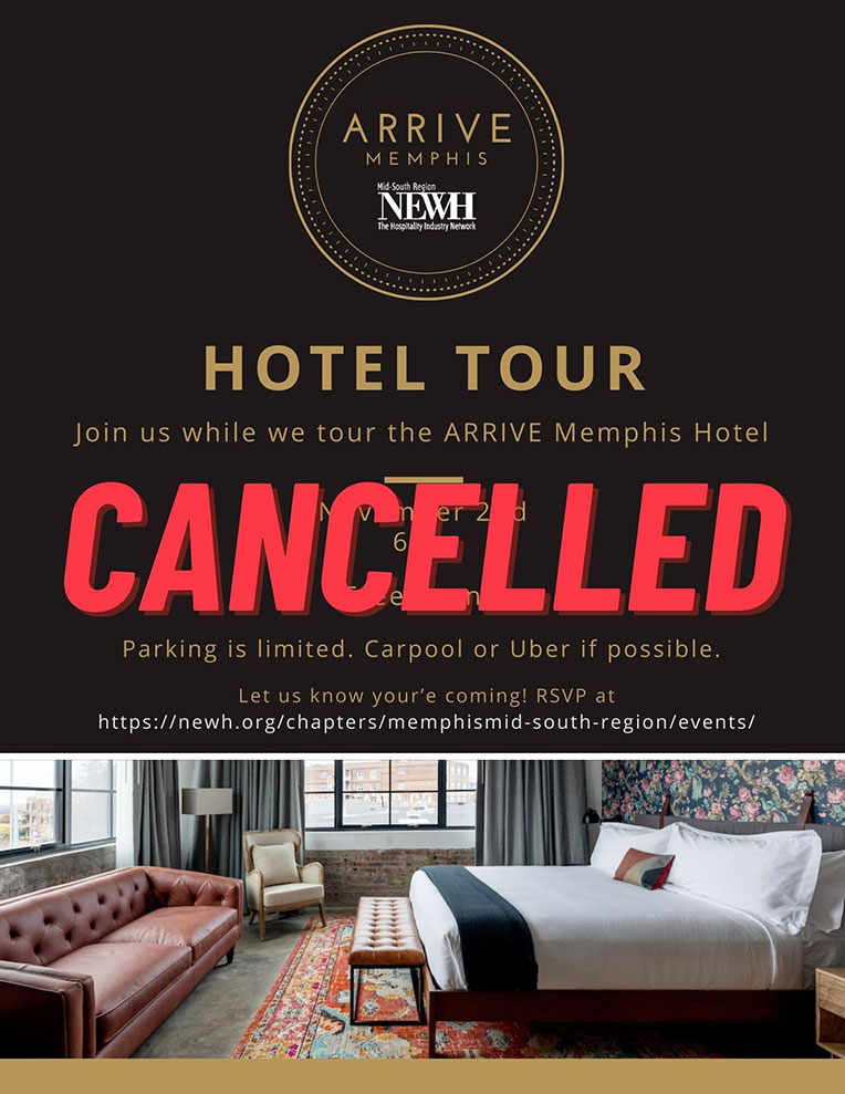 MidSouth Region NEWH Hotel Tour in Memphis – Cancelled Start: Thursday, November 2, 2023 6:00 pm CDT End: Thursday, November 2, 2023 8:00 pm CDT Venue: Arrive Memphis Address: 477 S Main Street, Memphis, TN, 38103 This event has been cancelled. Please join us for a future event! Map