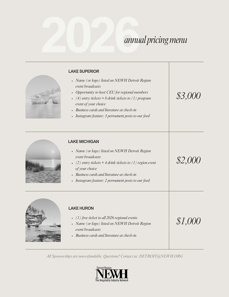 *Make your sponsorship count! NEWH loses 5% of all credit card charges, if possible – we’d appreciate if you pay via check/ACH payment. Reach out to Julie Hartmann for information!