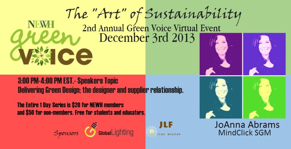 Don’t miss out on the NEWH Green Voice Virtual Event… with great sustainable thought leaders on topics; Regional Goods, Delivering Green Design, and Technology & Sustainability.