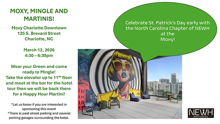 NEWH/North Carolina Region and NEWH, Inc. invite you to attend this event solely at your own risk. Measures will be taken to comply with all applicable health and safety directives, but by attending the event you assume any and all risks associated with your attendance, including without limitation, exposure to the COVID-19 and other health and safety risks.