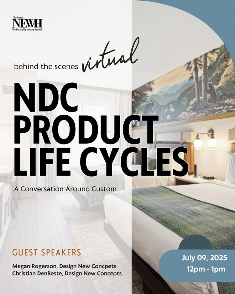 Join Megan Rogerson and Christian DenBeste from New Design Concepts (NEWH Northwest Annual Sponsor) who will walk us through the life cycle of a few products from the featured Dollywood Heartsong Lodge project… from the initial concept through production, along with insights into engineering and delivery.