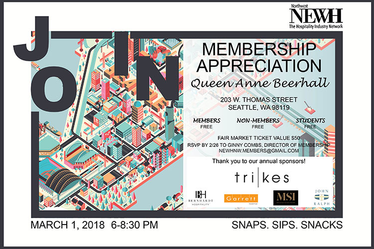 Northwest NEWH Seattle Member Appreciation Event Start: Thursday, March 1, 2018 End: Thursday, March 1, 2018 Venue: Queen Anne Beerhall Address: 203 W. Thomas Street, Seattle, WA, 98119 This event is sold out. Please stop by for future events! Map