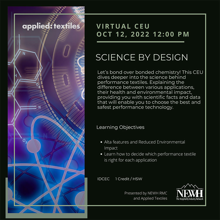 Rocky Mountain NEWH Virtual CEU – Science By Design Start: Wednesday, October 12, 2022 12:00 pm MST End: Wednesday, October 12, 2022 1:00 pm MST Venue: Virtual CEU Click here to Register today!