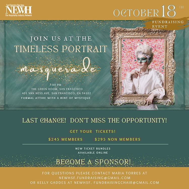 On behalf of NEWH SF Chapter We are excited to invite you to our annual fundraiser Portrait Timeless Masquerade, 2024’s fundraiser will be a Masquerade Ball! Imagine a Bridgerton-inspired evening with a touch of mystery. This will be a unique and memorable event!