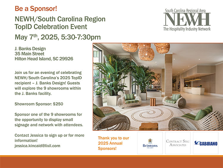 Proceeds from this event will fund the NEWH/South Carolina’s mission of scholarship and education for the talent of tomorrow and the awarding of scholarships this Fall.