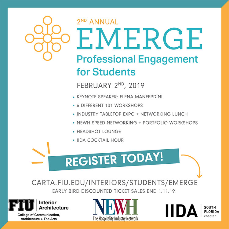 South Florida NEWH FIU Student Day Start: Saturday, February 2, 2019 8:30 am CST End: Saturday, February 2, 2019 5:30 pm CST Venue: FIU Modesto A. Maidique Campus - Paul L. Cejas Architecture Building Address: 11200 SW 8th Street, Miami, FL, 33199 Students – register today! Map