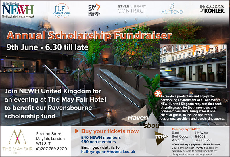 United Kingdom NEWH Annual Scholarship Fundraiser Start: Thursday, June 9, 2016 6:30 pm CDT End: Thursday, June 9, 2016 Venue: The May Fair Hotel Address: Stratton Street, Mayfair, London, W1J 8LT Register today! Email [email protected] Map