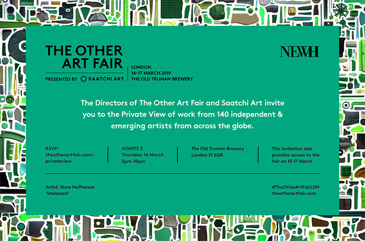 United Kingdom NEWH – The Other Art Fair Event Start: Thursday, March 14, 2019 5:00 pm CDT End: Thursday, March 14, 2019 10:00 pm CDT Venue: The Old Truman Brewery Address: London, E1 6QR You are invited… click here for registration details! Map