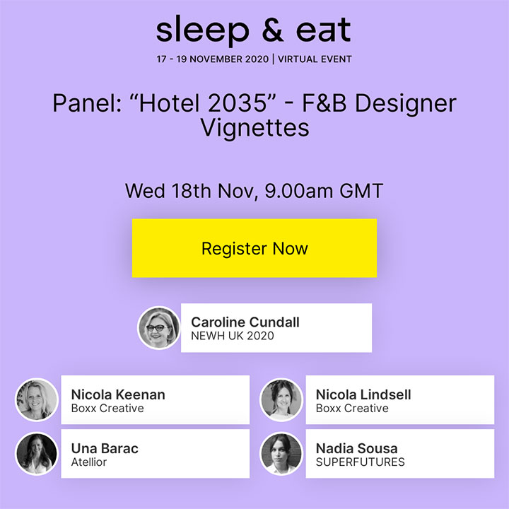 This year Sleep & Eat Virtual 2020 challenged designers and hotel chains to look 15 years into the future and consider what the Hotel of 2035 will look like.