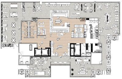 Our floor plan depicts our Room-within-a-Room⢠philosophy, which is critical today, not only for social distancing but for the security and safety of the guests and staff. As you walk through the space, you can see the fiancÊe meeting the parents of the bride for the first time; a group of guys getting together in a room to play games and watch sports; the book club that meets every month; family gatherings; the couple out for a date; the single business travelers wanting a drink while catching up on emails and the happy bar fly wanting to socialize with others.