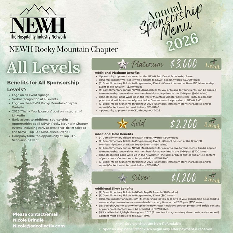 Be a 2026 NEWH/Rocky Mountain Sponsor! News October 20, 2025 Check out the 2026 sponsorship opportunities below! Click here to sign up/pay – reach out to Nicole Brindle if you have any questions!