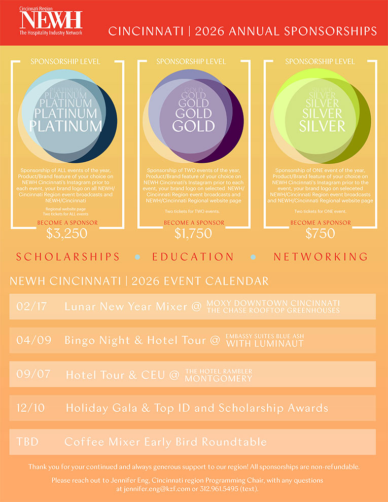 Be a Cincinnati Region NEWH 2026 Annual Sponsor! News February 16, 2026 Sign up today Questions? contact Jennifer