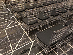 Utilizing the capabilities within the new Definity In-Stock rug program, offered by parent brand Mohawk Group, was a lifesaver for the event in another way. “Timing was critical,” said Keffer. “If we didn’t address the flooring, we couldn’t address the sound, and if we couldn’t address the sound, we couldn’t have the event.”