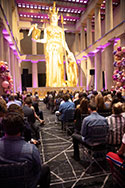 “We wanted to create, for lack of a better term, the reverence of a church service in this event space,” said Keffer. “We took a huge stone room with bad audio and found a way to overcome that, and we did it in style.”