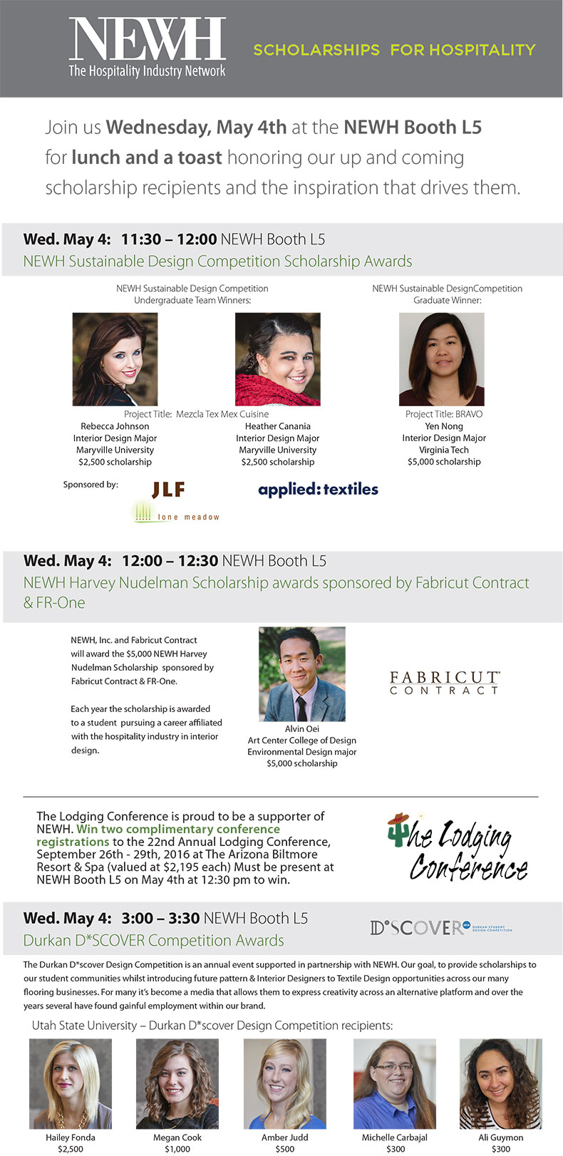 Enjoy lunch while celebrating our Scholarship Recipients at NEWH Booth L5 at HD Expo News April 13, 2016