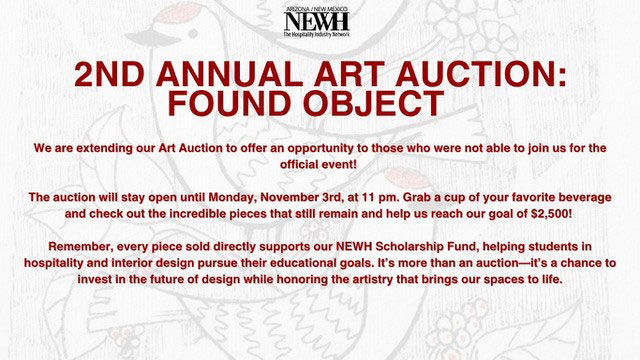 We are extending our 2nd Annual NEWH Arizona/New Mexico Chapter Art Auction to offer an opportunity to those who were not able to join us for the official event!