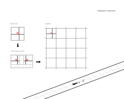 • Micro – Patrons who want the culinary experience but prefer more distancing, can pick up our designed bento box serving system allowing the restaurant experience to be taken out on the town or home. Technology is embedded into the bento box for tracking, including a coupon for when it is returned. A 6 FT ribbon ties the boxes together and functions as a spacing tool for patrons.