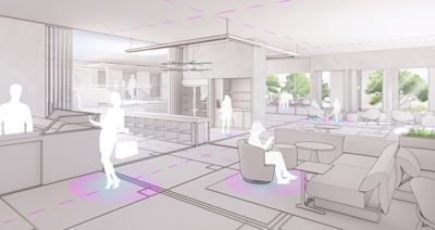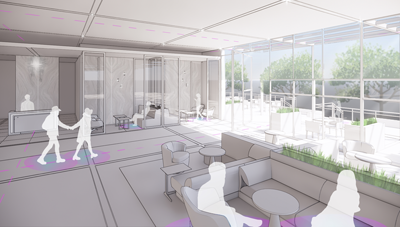Smart and tech-forward, The Refined Module creates an intuitive, elevated guest experience that balances peace of mind with dynamic public spaces. Discrete and polished sanitation kiosks offer guests a moment to freshen up as they make their way through the space, while doubling as way-finding moments. Enhanced comfort and worry-free convenience is at guest’s fingertips as this new module works in lockstep with app-based programming while they’re greeted by reception at check-in, ordering a cocktail from the lobby bar, or breezing through the grab-and-go. Improved circulation and indoor-outdoor connection inspires guests to explore their surroundings, taking in fresh air on the outdoor terraces while staying socially engaged from a distance. The Refined Module looks ahead to a new rhythm that connects guests to their hotel experience like never before.